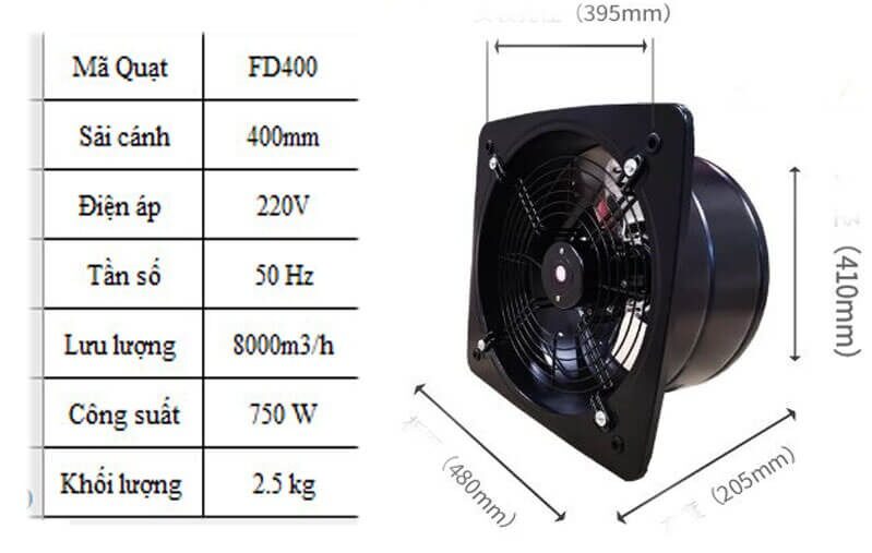 Thông số kỹ thuật Quạt hút công nghiệp Geun FD400